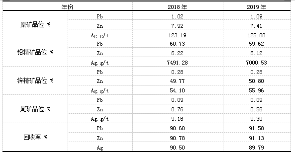 采礦廠將不同區域礦石分穿、分爆、分采、分裝、分運、分堆在原礦堆場,選廠根據不同堆存區域的原礦性質的不同和月采礦計劃來合理、靈活的入選礦石,并保證入選的礦石采用對應的最佳工藝技術標準。此項工作于2019年正式實施,生產指標有了大幅的提高,國森礦業混合入選(2018年)與分區域(2019年)選礦選礦指標對比,具體見下表。