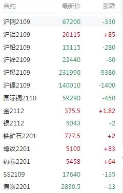 有色金屬漲跌不一 部分金屬修復夜間跌幅